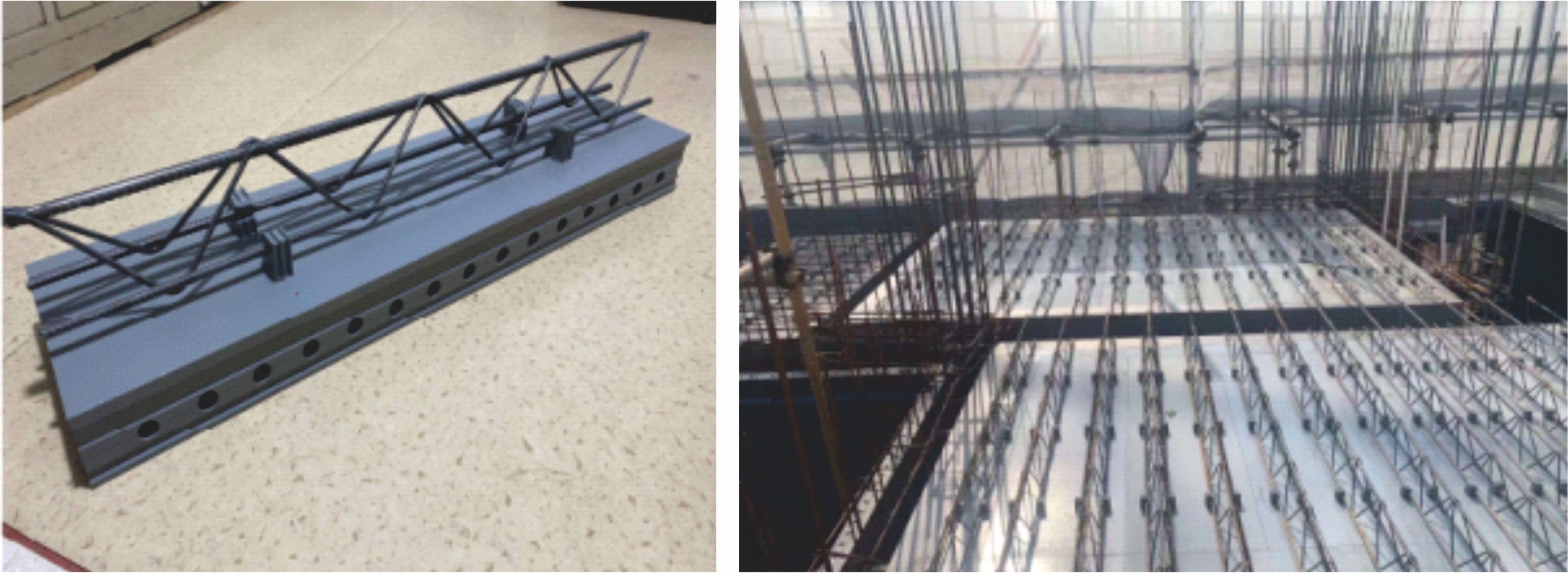底板上部析架最小間隙55mm,增加了現(xiàn)場(chǎng)預(yù)埋管線的允許直徑,方便現(xiàn)場(chǎng)管線預(yù)埋并降低了預(yù)埋成本 |