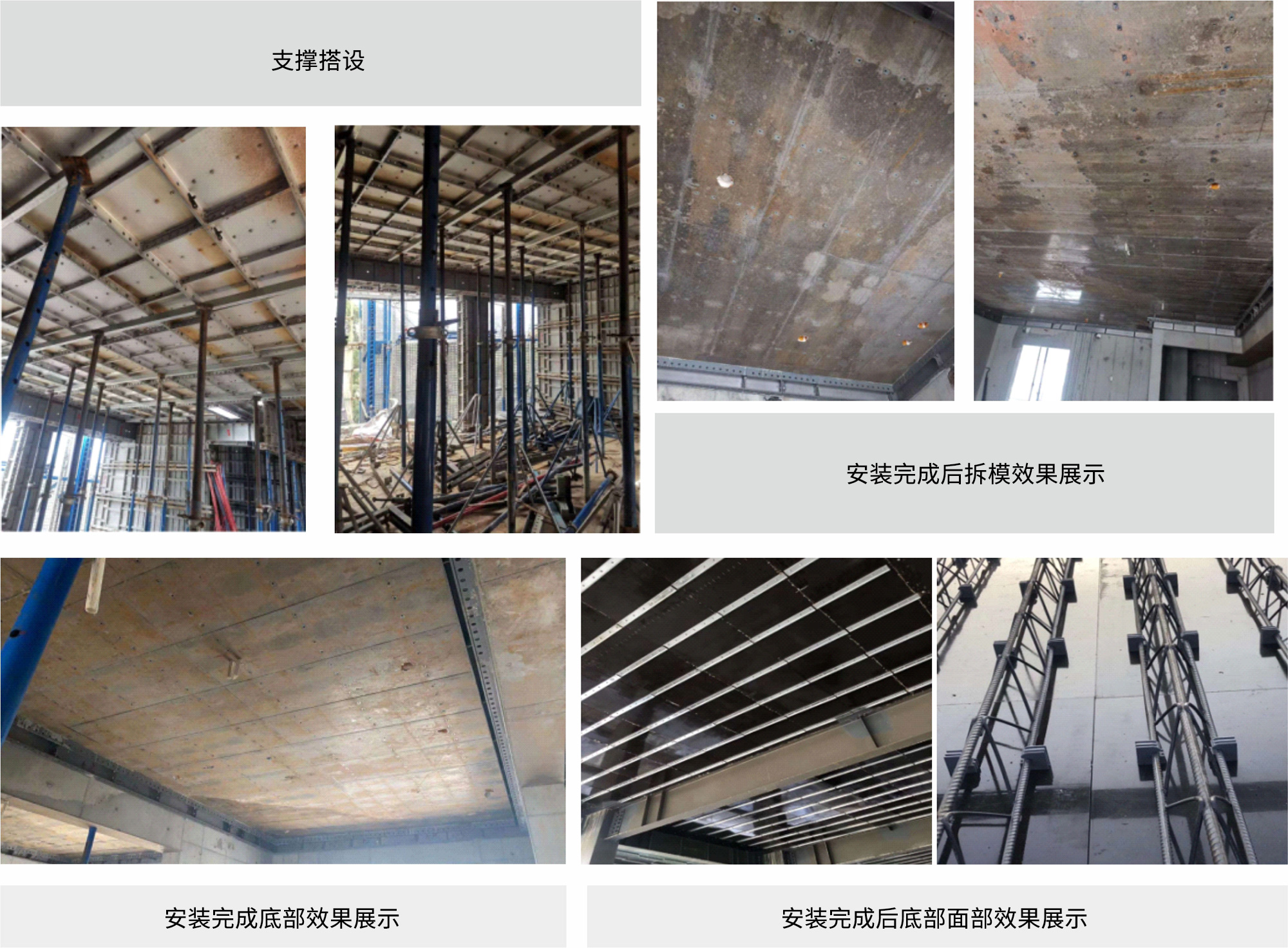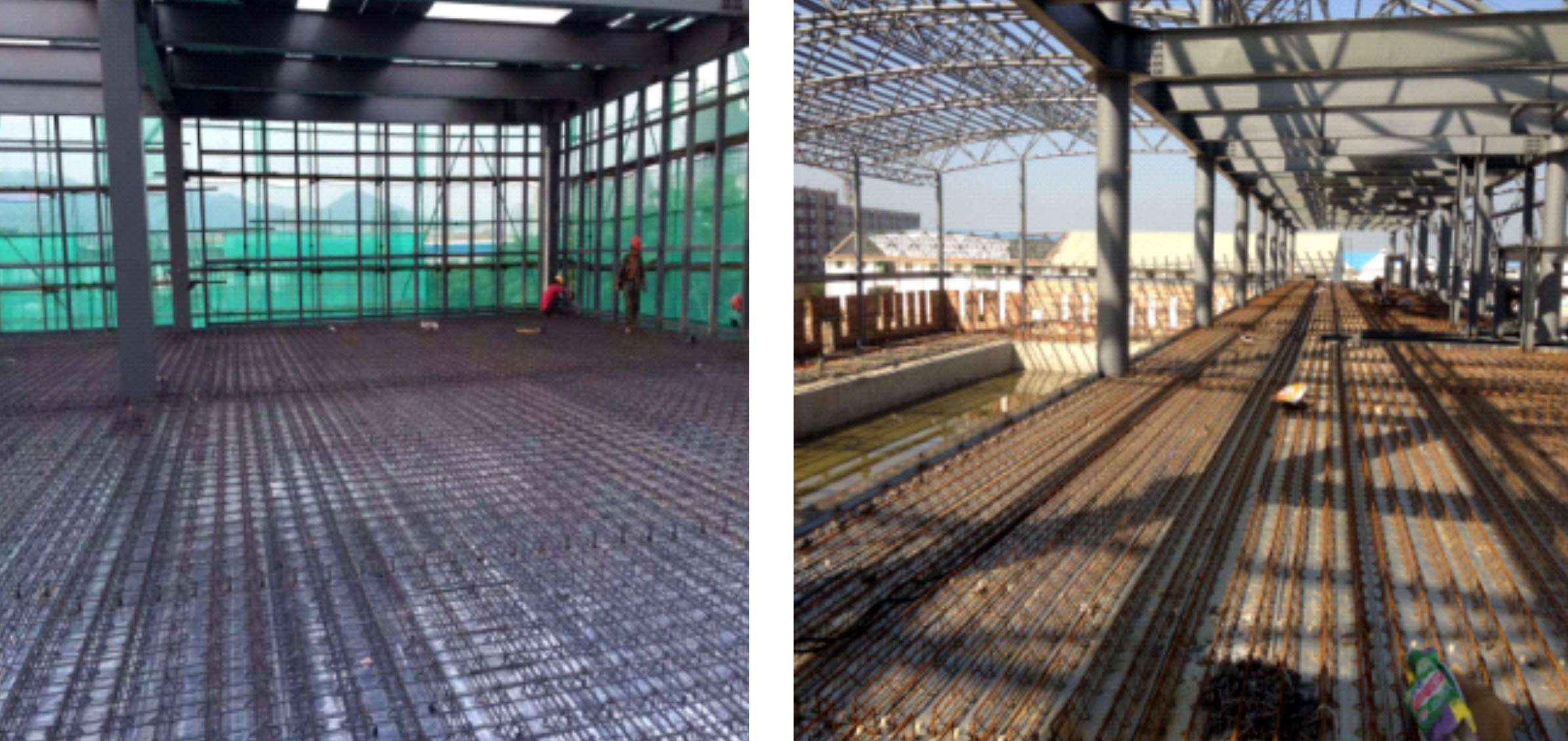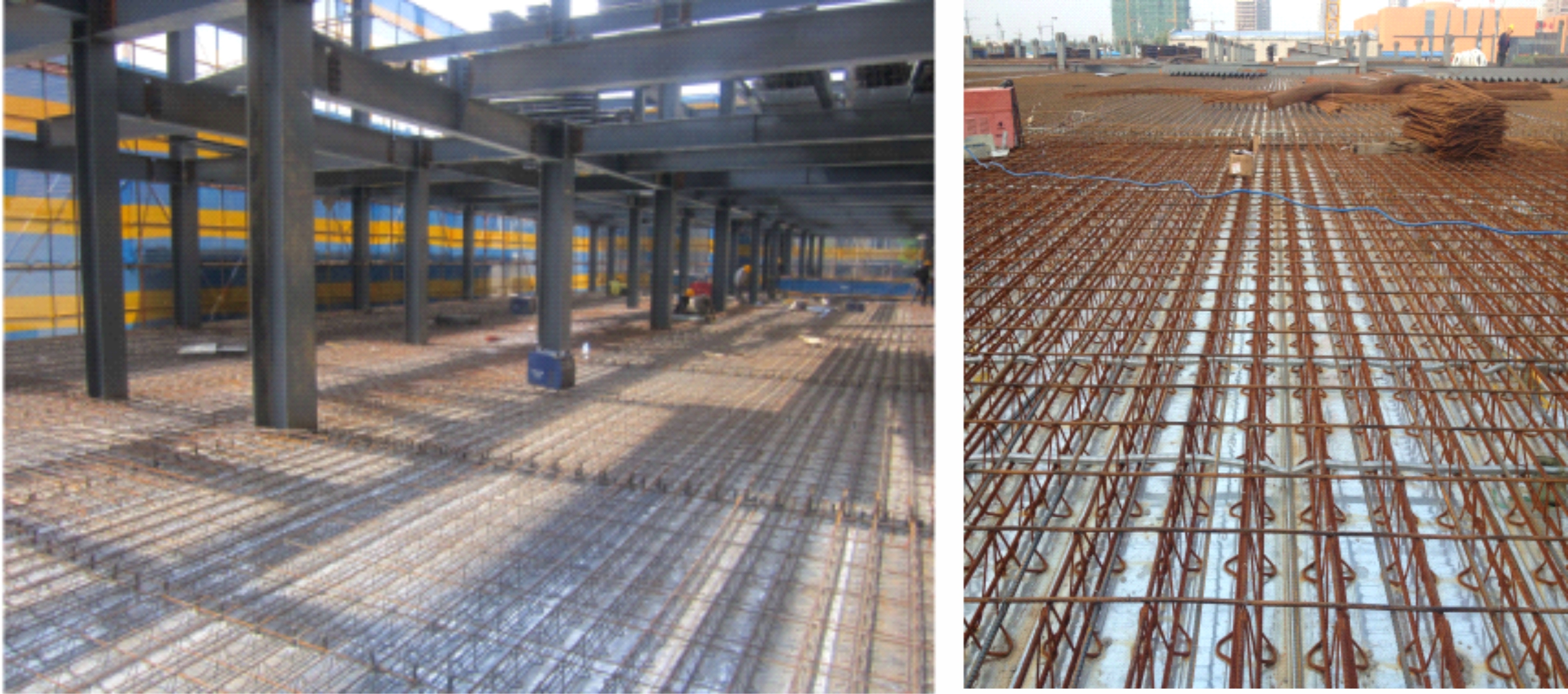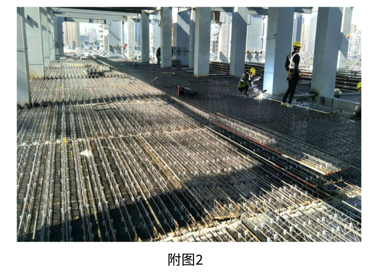 裝配可拆式鋼筋桁架樓承板,實(shí)際案例(龍湖集團(tuán)浙江公司紫荊港項(xiàng)目)6-7 人一天可鋪裝1000㎡(見(jiàn)附圖二),可有效縮短工期比自承式樓承板的安裝 快百分之三十的速度,拆除比較方便,1400㎡ 的板面6人一天即可拆除完畢。 |