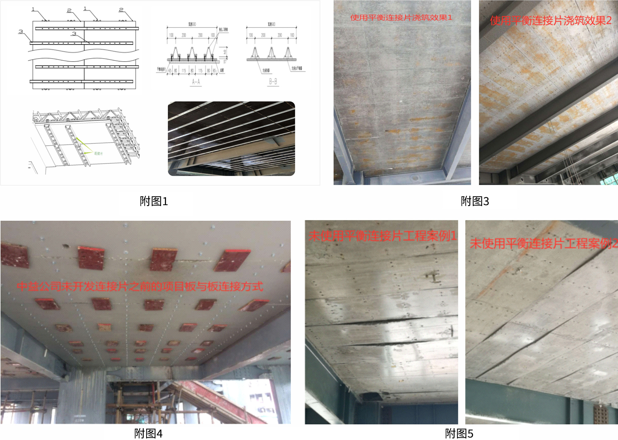 (3)從澆筑完后的效果對(duì)比:可拆式樓承板原來(lái)鋪裝完成后,在沒(méi)有連接片的時(shí)候采用的是下面用模板打 自攻螺絲,使板與板之間連接成一個(gè)整體平面(見(jiàn)附圖四),這樣的施工效 率低下,成本高, 澆筑后質(zhì)量不能保證,這是某公司無(wú)連接片澆筑混凝土后 的效果見(jiàn)(附圖五),所以自從中益/泰博的裝配可拆式鋼筋桁架樓承板的底 部連接片技術(shù)開(kāi)發(fā)以后(中益/泰博自主研發(fā)的專利技術(shù)),底部每 400mm間 距的有一檔平衡連接片(見(jiàn)附圖一)交叉錯(cuò)位連接,防止了板與板之間的錯(cuò)位 ,使得板面之間能成為一個(gè)平面,保證了樓板底部的平整度,并且提高了施 工速度,質(zhì)量做到無(wú)需二次抹灰,可直 接移交裝修。(見(jiàn)附圖三)