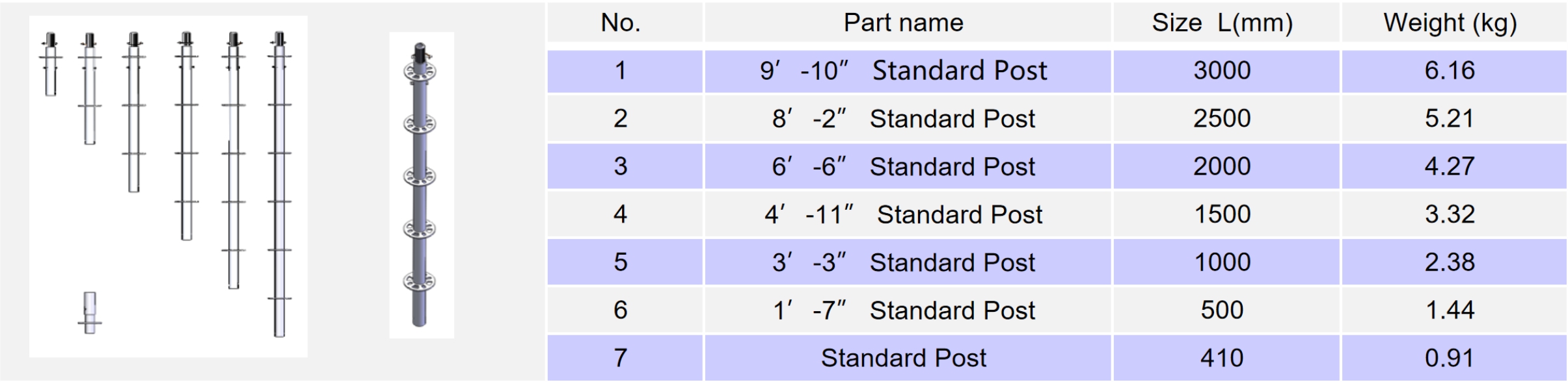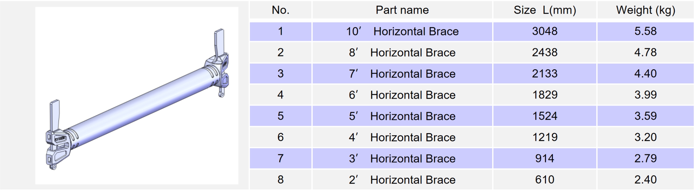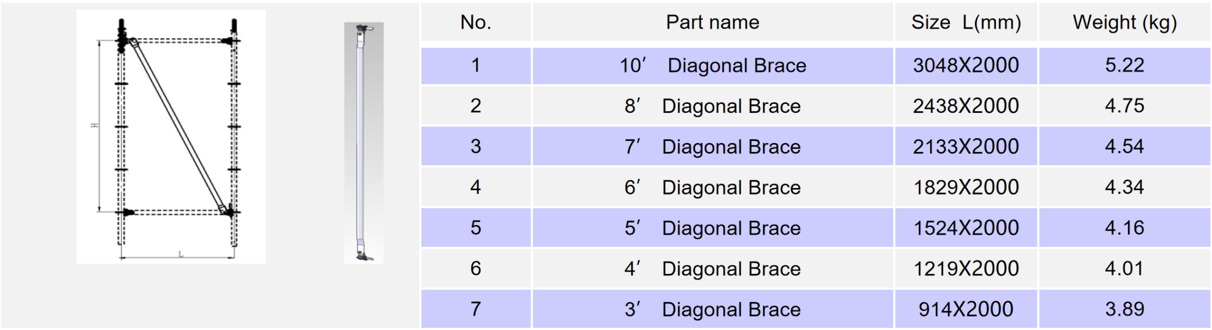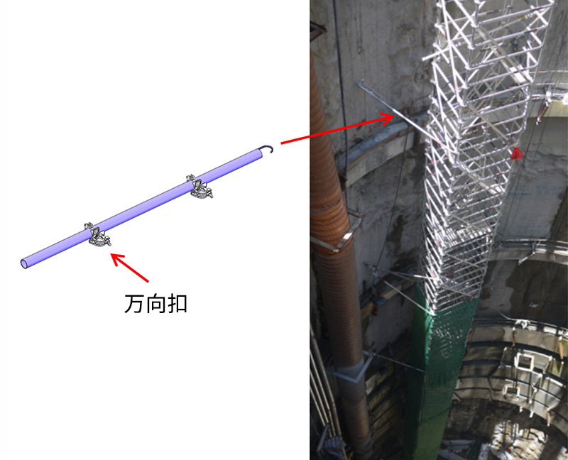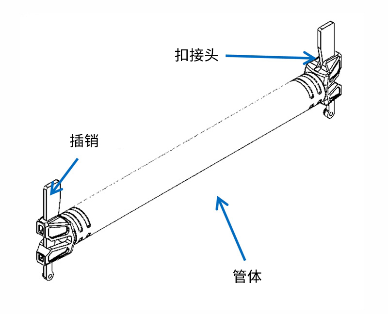 ① 管體材質(zhì)采用6061-T6。 ② 兩端裝配有轉(zhuǎn)動(dòng)扣接頭,與立桿連接盤采用插銷連接的斜向桿件。 |