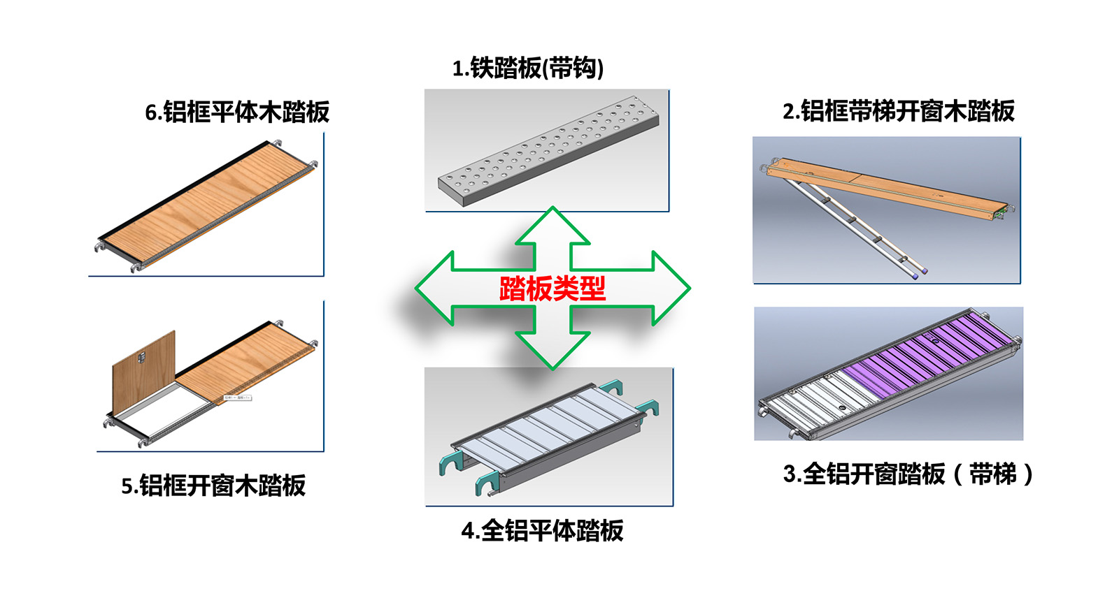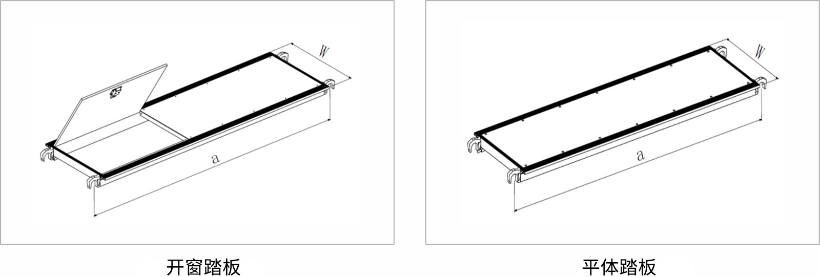 裝配在水平桿上,作為施工或承托物品的工作平臺。采用鋁框+ 木防滑膠合板制作,且自帶防風(fēng)、開窗功能。 踏板寬度有300和600兩種,長度600~3000,每個(gè)300一種規(guī)格。 |