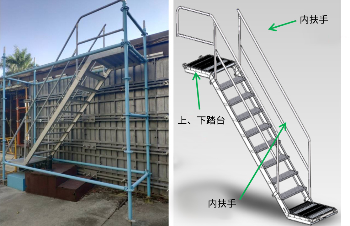 結(jié)構(gòu):梯踏臺,梯腳踏板、側(cè)梁組合焊接型;+內(nèi)、外扶手組成。 優(yōu)點(diǎn):跨度度400-800、承載高、安裝快速。 |