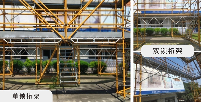 由上下弦桿焊接組成的與立桿扣件的水平加強(qiáng)桿件,用于腳手架跨空位置。 作用:(施工)人行、車通道、飛機(jī)、輪船、設(shè)備維修等等。 |