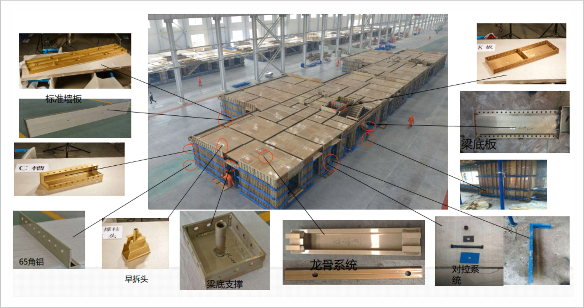 模板系統(tǒng): 構成混凝土結構施工所需的封閉面,保證混凝土澆灌時建筑結構成型。